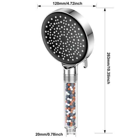High pressure shower head with filter - YEAUPE Handheld Powerful Flow Beaded Showerheads Filter Pressure Boost Water Saving 6 Modes Hard Water Showerheads Low Water Pressure Showerheads